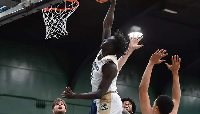 阿科尔-马温今年25岁,身高2米08,臂展2米21,职业生涯先后效力于澳大利亚联赛、格鲁吉亚超级联赛、斯洛伐克联赛。25-26赛季,马温效力于斯洛伐克联赛,代表球队出战23场比赛,场均9分4.3篮板1.2助攻,代表球队出战9场冠军联赛,场均7.9分4.2篮板。从技术特点来看,马温具备出色的身高和臂展优势,内线防守和篮板保护能力突出,还具备一定的中距离投篮能力,篮下低位背身单打能力也很不错,进攻手段非常丰富,是一名能里能外的大外援,可以说是低配版的洛夫顿和亚布塞莱。