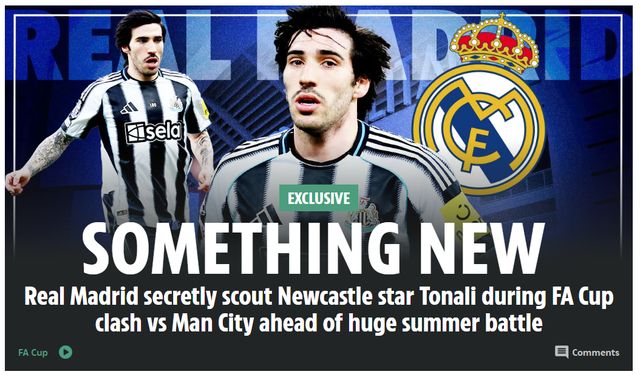 《太阳报》指出,皇马球探来英伦观看足总杯,带着两个目的:其一,研究分析曼城的战术。下周中的欧冠1/8决赛首回合,皇马将在主场迎战曼城。皇马技战术团队,希望寻找到破解瓜迪奥拉打法的答案。其二,皇马在关注、考察纽卡中场托纳利。